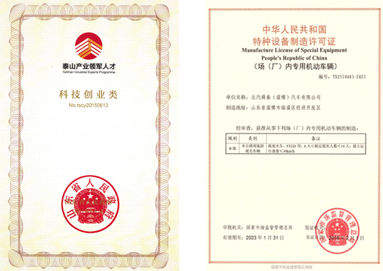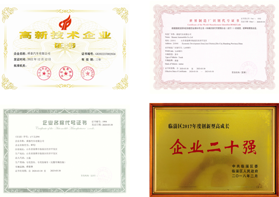 省泰山產(chǎn)業(yè)領(lǐng)軍人才企業(yè)、高新技術(shù)企業(yè)、省科技型中小企業(yè)、 特種設(shè)備制造許可企業(yè)、工信部目錄內(nèi)專(zhuān)用車(chē)生產(chǎn)企業(yè)